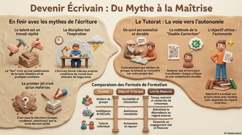 Former un écrivain, c’est lui apprendre à retravailler sans se vexer — et sans abandonner.